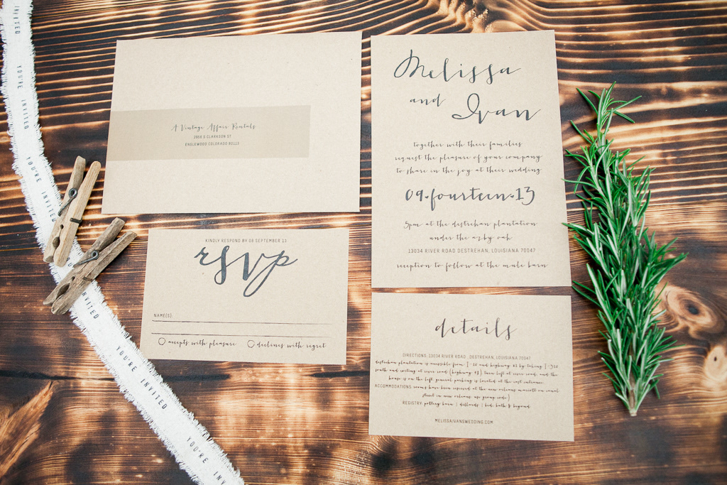 Wedding Invitation packages created for A Vintage Affair Rentals styled shoot